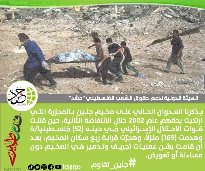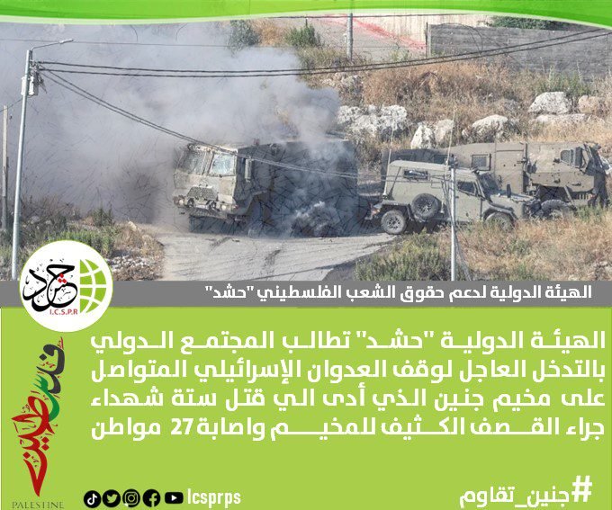 الهيئة الدولية “حشد” تُشارك في حملة إلكترونية للتنديد بجرائم الاحتلال في جنين