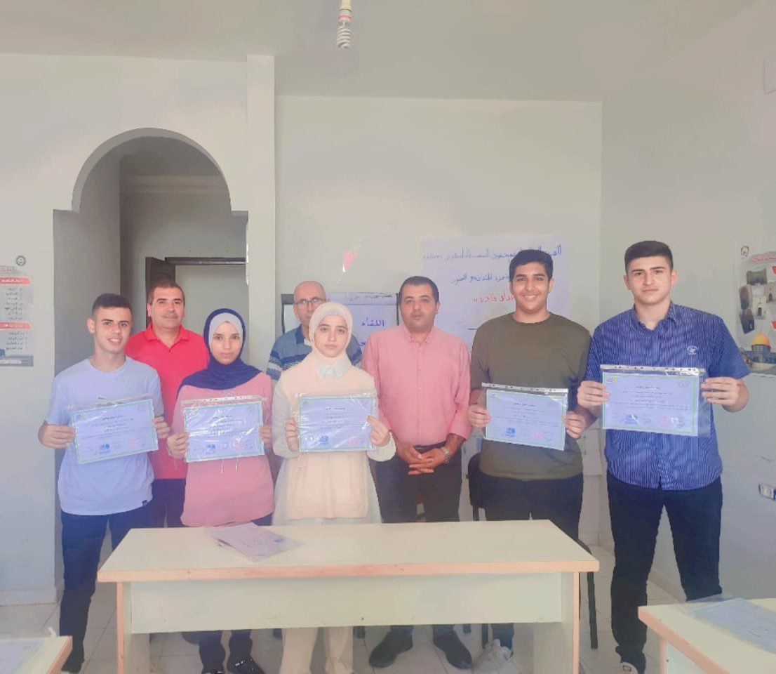 وشارك في الدورة (20) طالب من الصف الثامن حتى الحادي عشر، وفي ختام الدورة تم توزيع شهادة لجميع الطلاب المشاركين، وكذلك المدربين الذين ساهموا في انجاح الدورة.