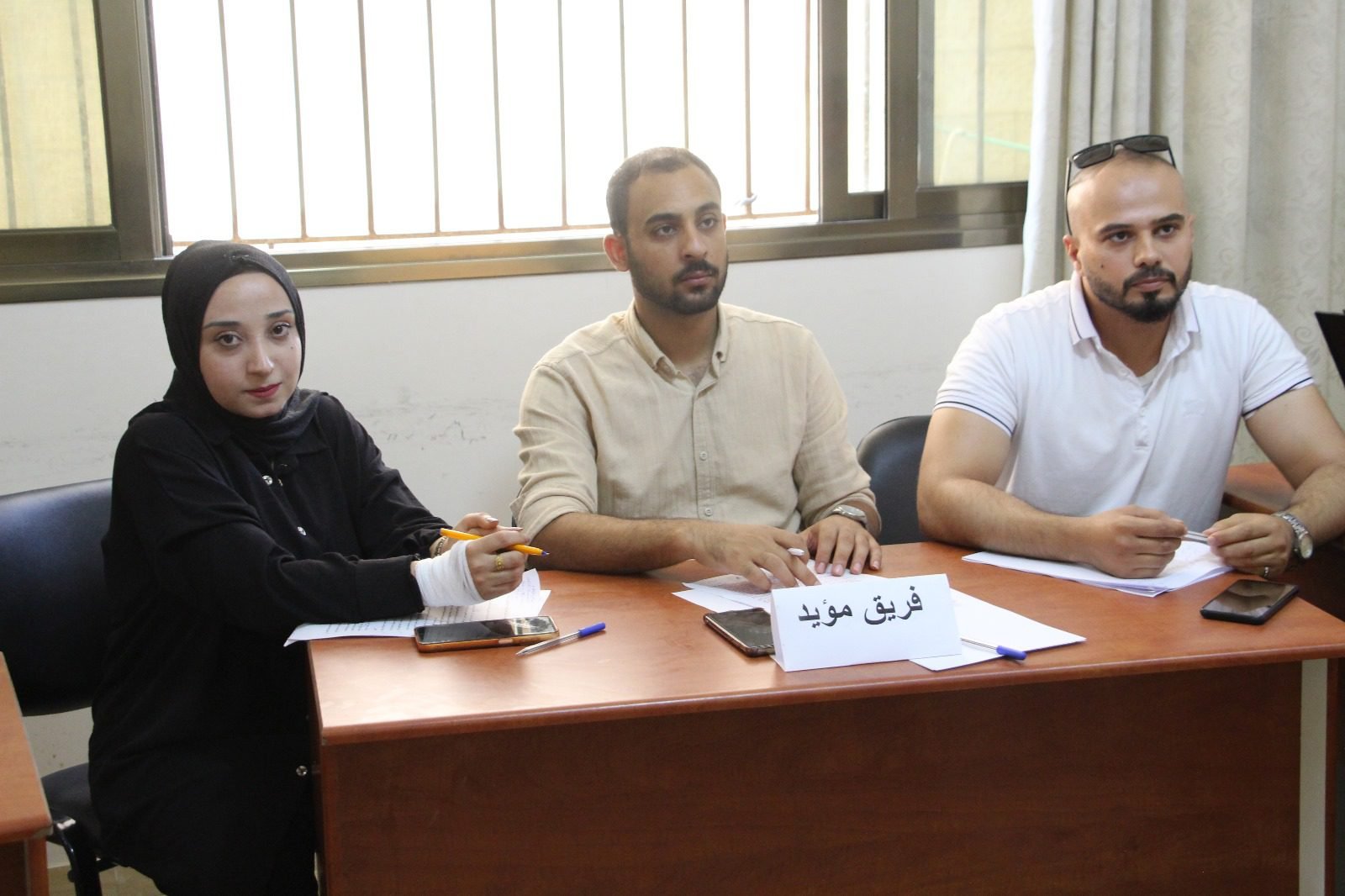 ومثل الفريق المؤيد للمشروع كلا من معتصم فارس وتحرير أبو عربية ومحمد خليفة، فيما مثل الفريق المعارض كلا من أدهم المجدلاوي وآلاء داوود ومحمد سليم.