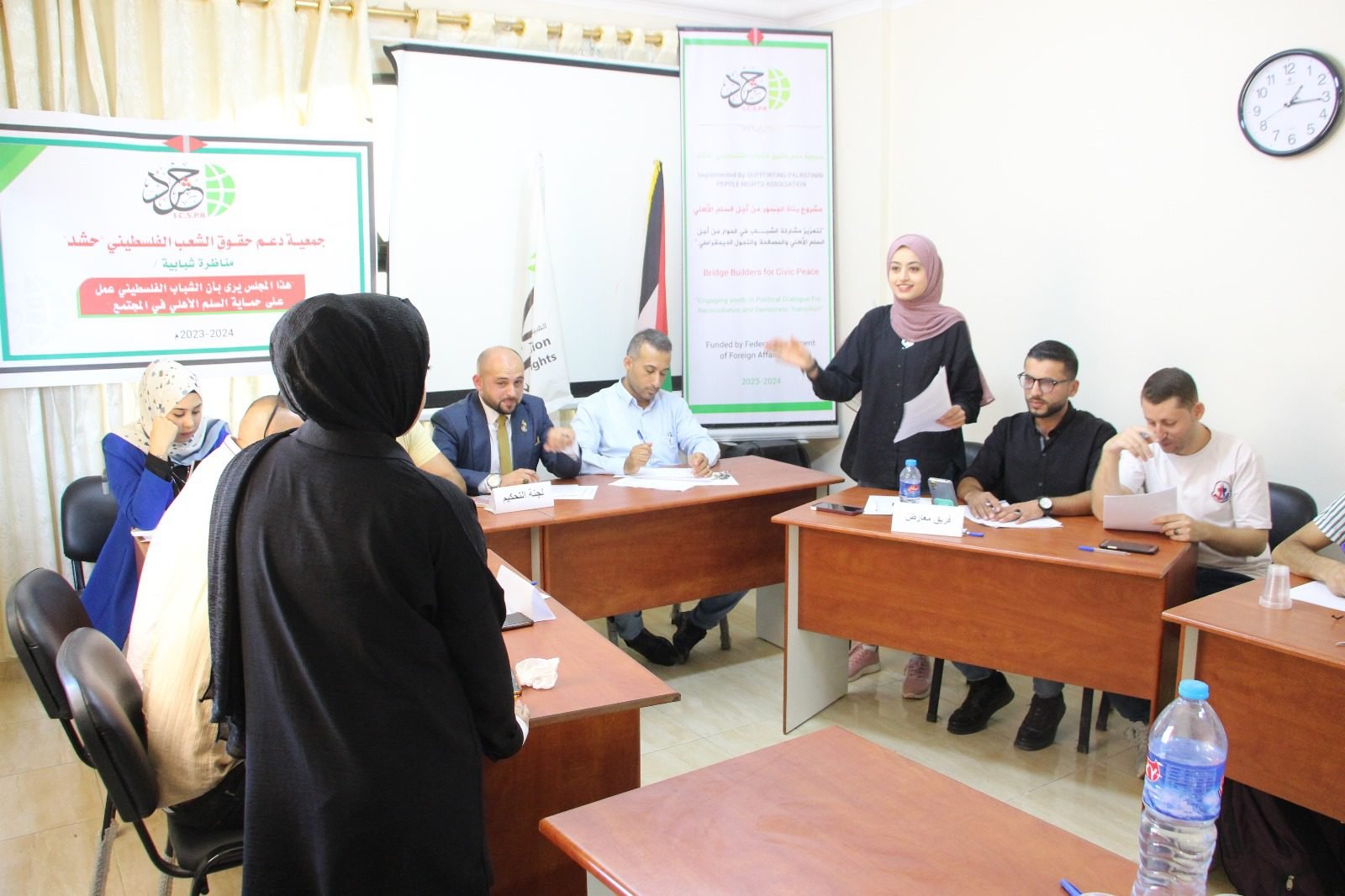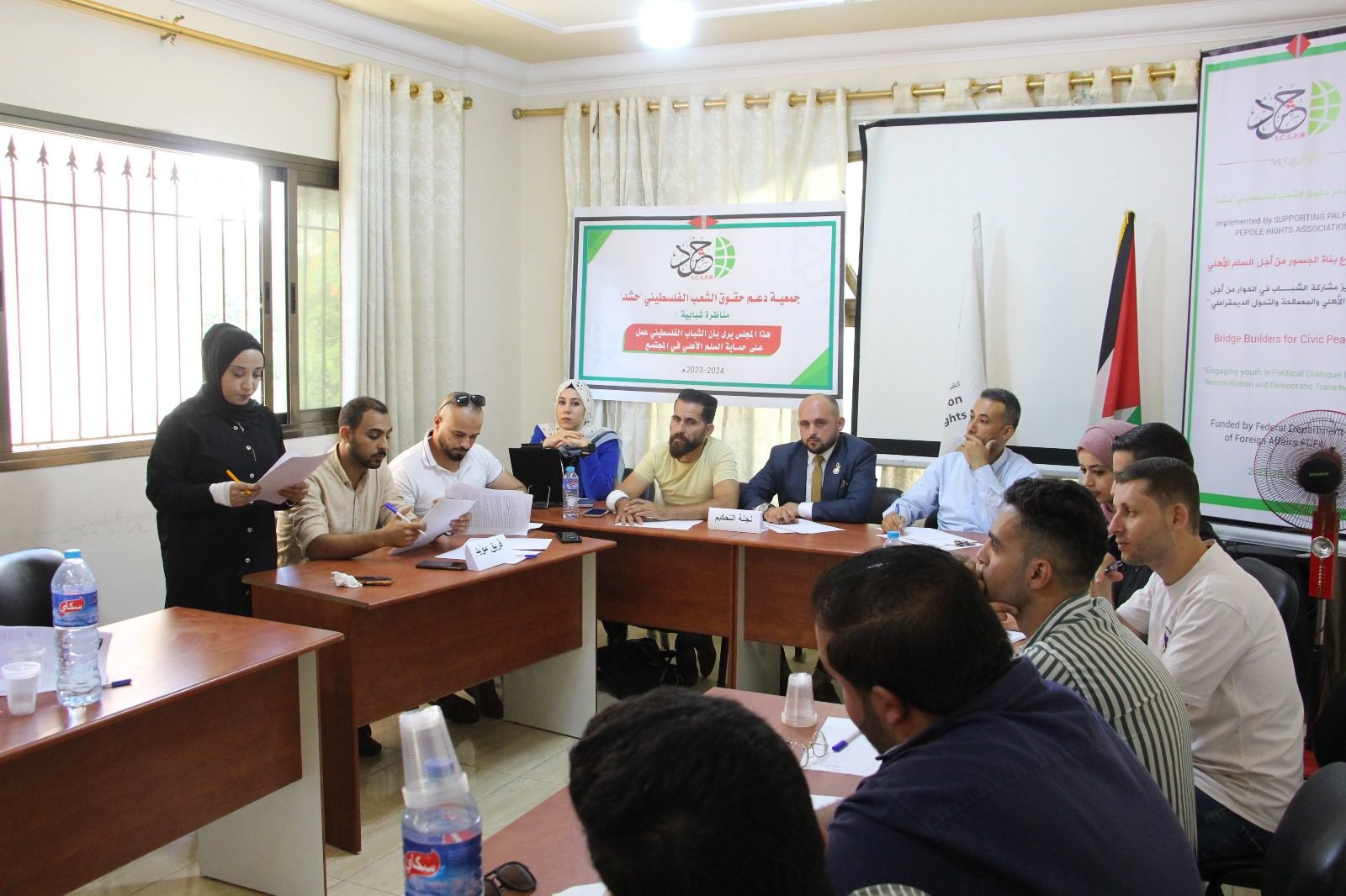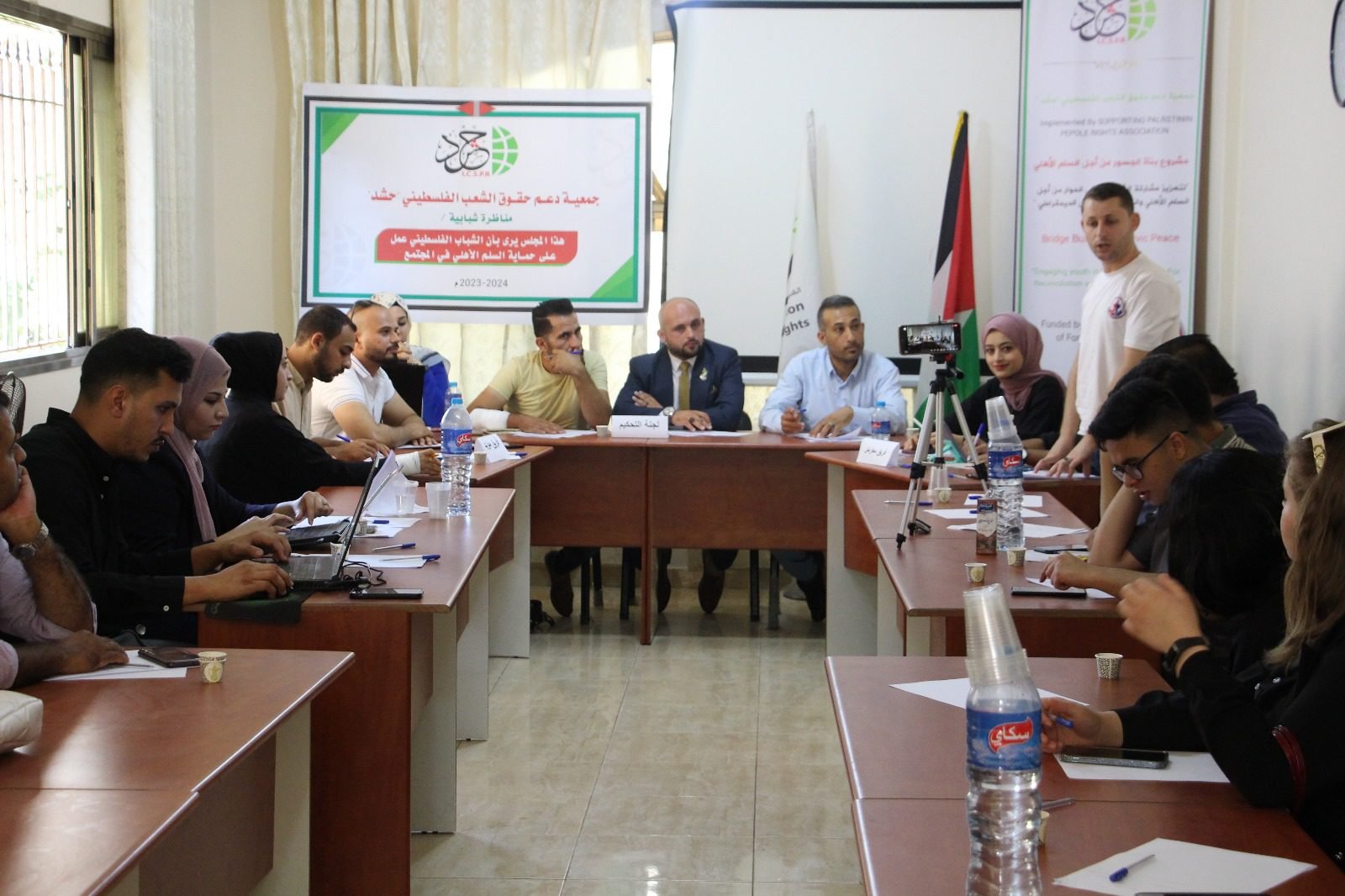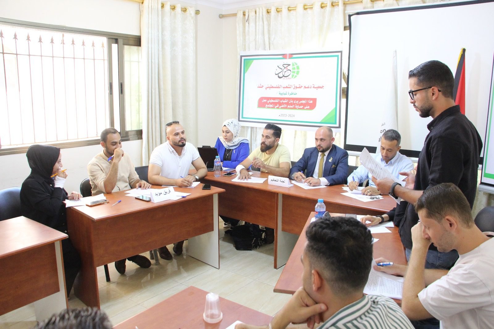 وأكد الأستاذ معتصم فارس ممثل الفريق المؤيد، أن السلم الأهلي يهدف الى تحقيق الأمن والسلام والاستقرار في المجتمع الفلسطيني، لافتا إلى أن الشباب الفلسطيني كان له دوراً كبيرا في حماية السلم الأهلي.