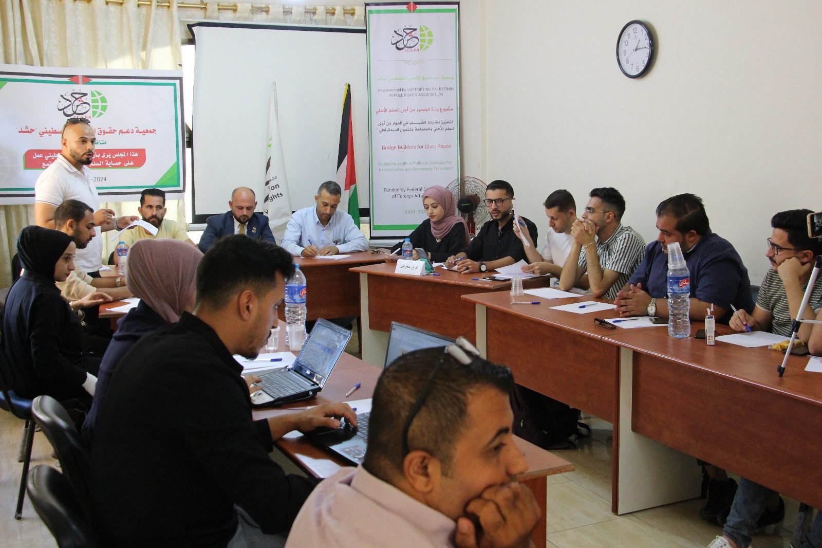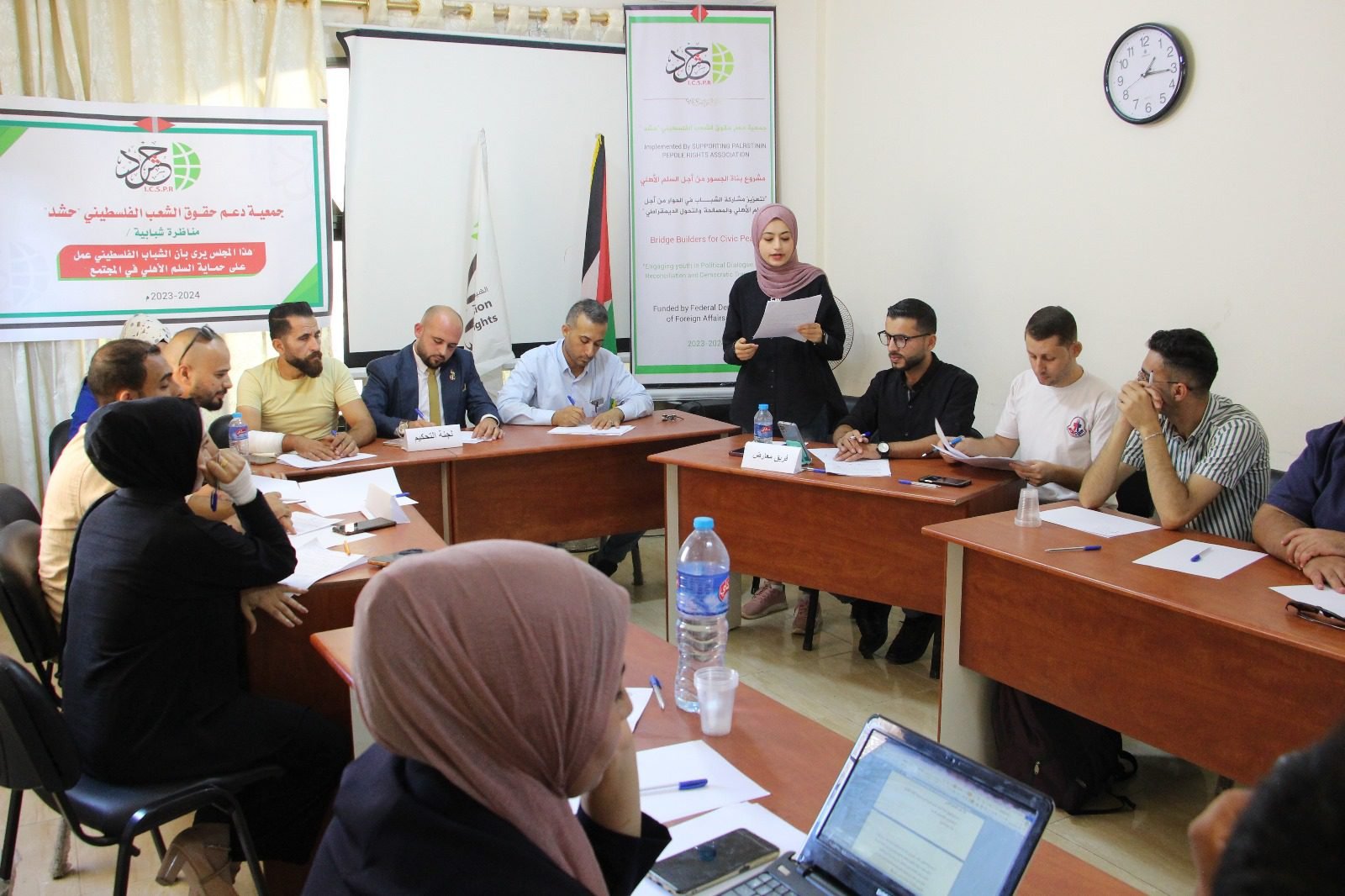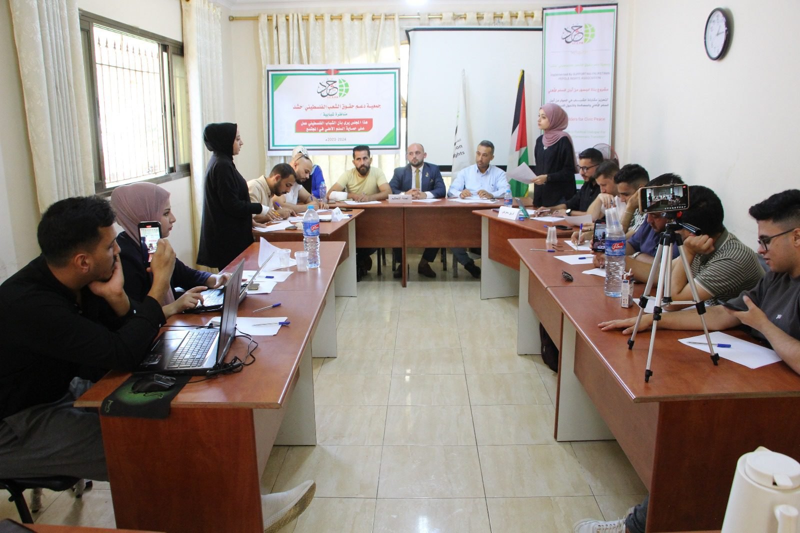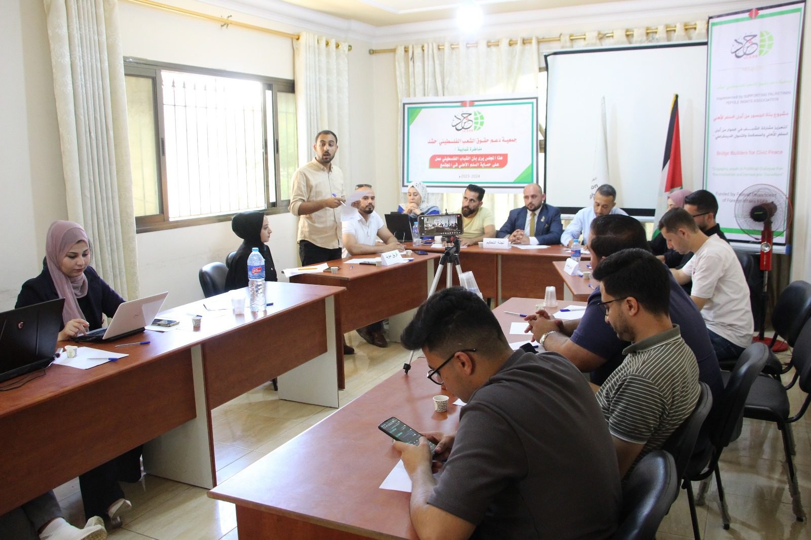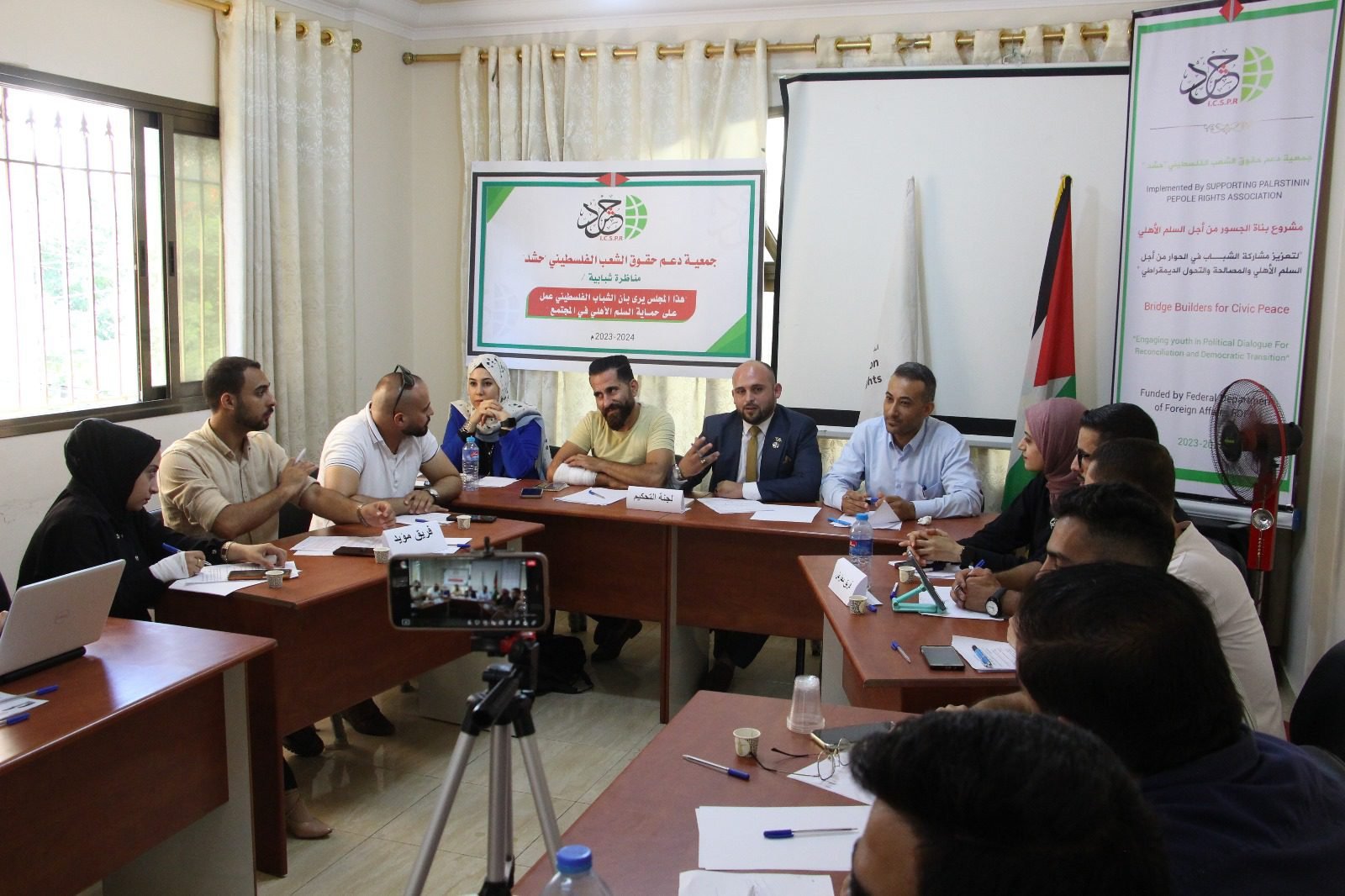 وأكد الأستاذ معتصم فارس ممثل الفريق المؤيد، أن السلم الأهلي يهدف الى تحقيق الأمن والسلام والاستقرار في المجتمع الفلسطيني، لافتا إلى أن الشباب الفلسطيني كان له دوراً كبيرا في حماية السلم الأهلي.