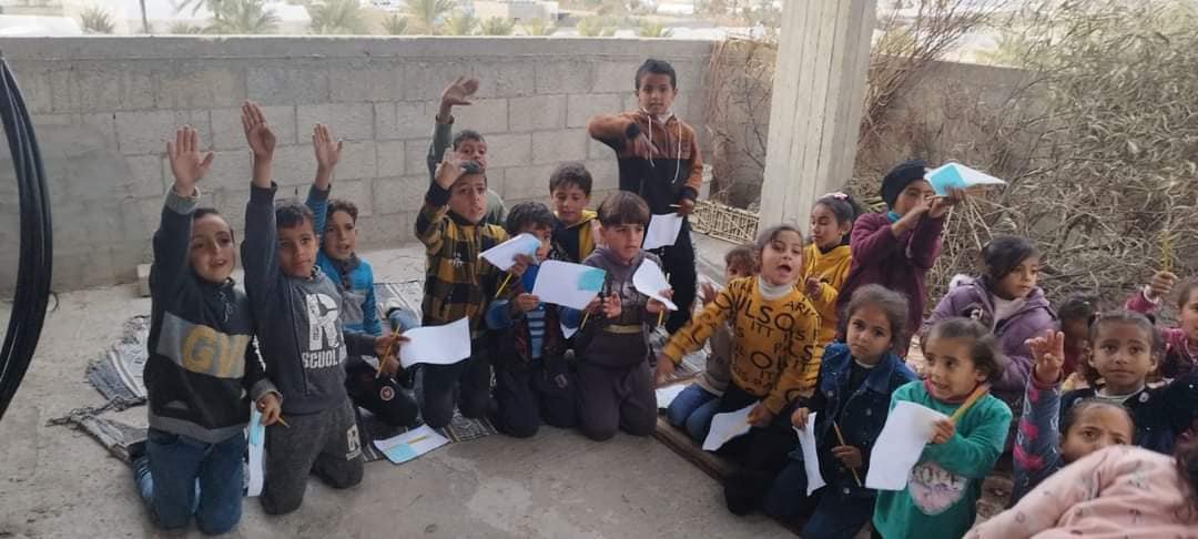حشد تواصل أنشطة الدعم الإنساني في مراكز الايواء ومع النازحين قسرا وتنظيم أنشطة الدعم النفسي للأطفال