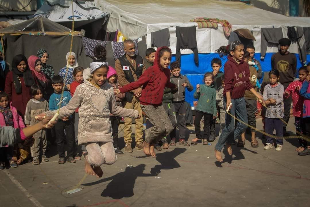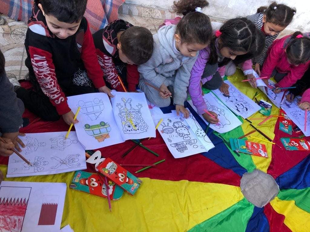 الهيئة الدولية لدعم حقوق الشعب الفلسطيني حشد تواصل أنشطة الدعم الإنساني في مراكز الايواء ومع النازحين قسرا وتنظيم أنشطة الدعم النفسي للأطفال .