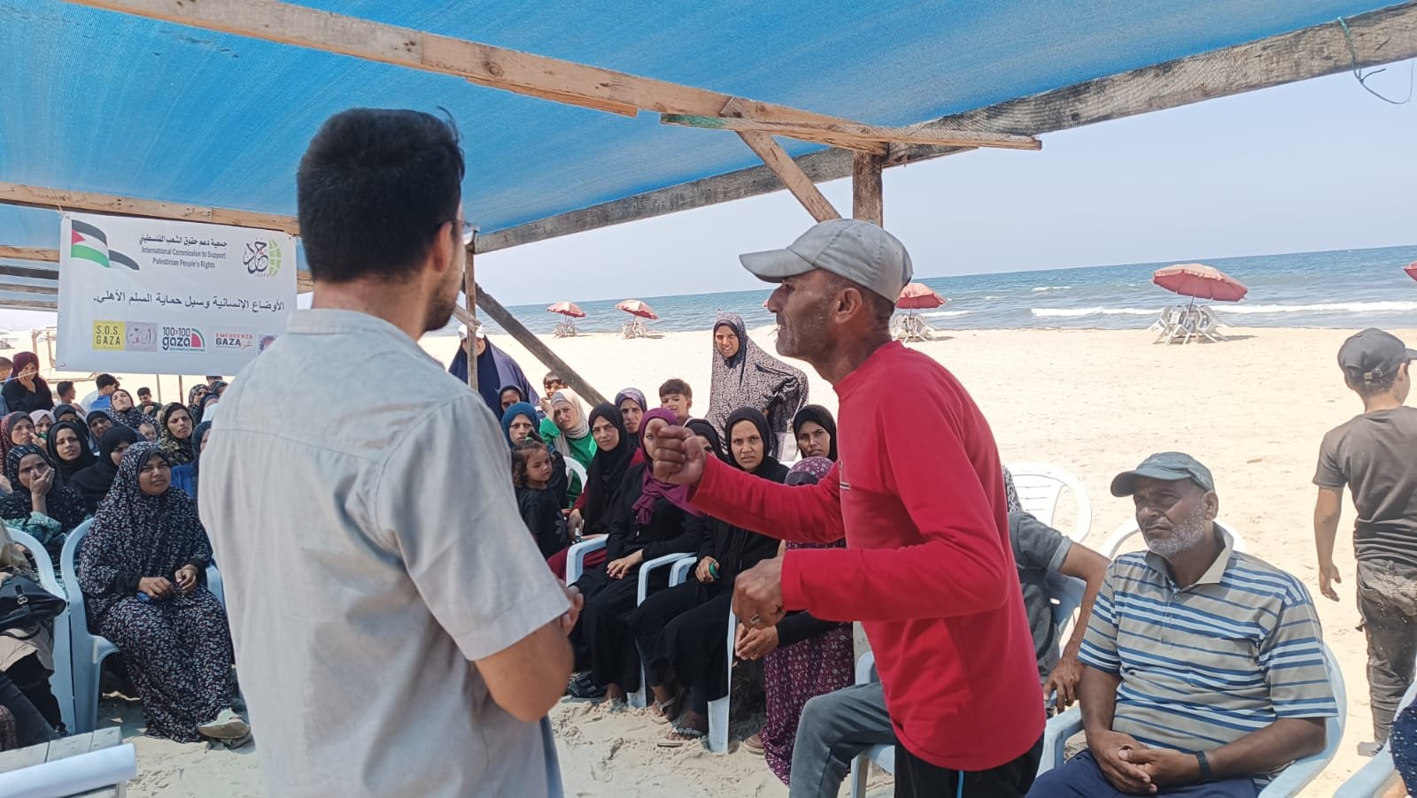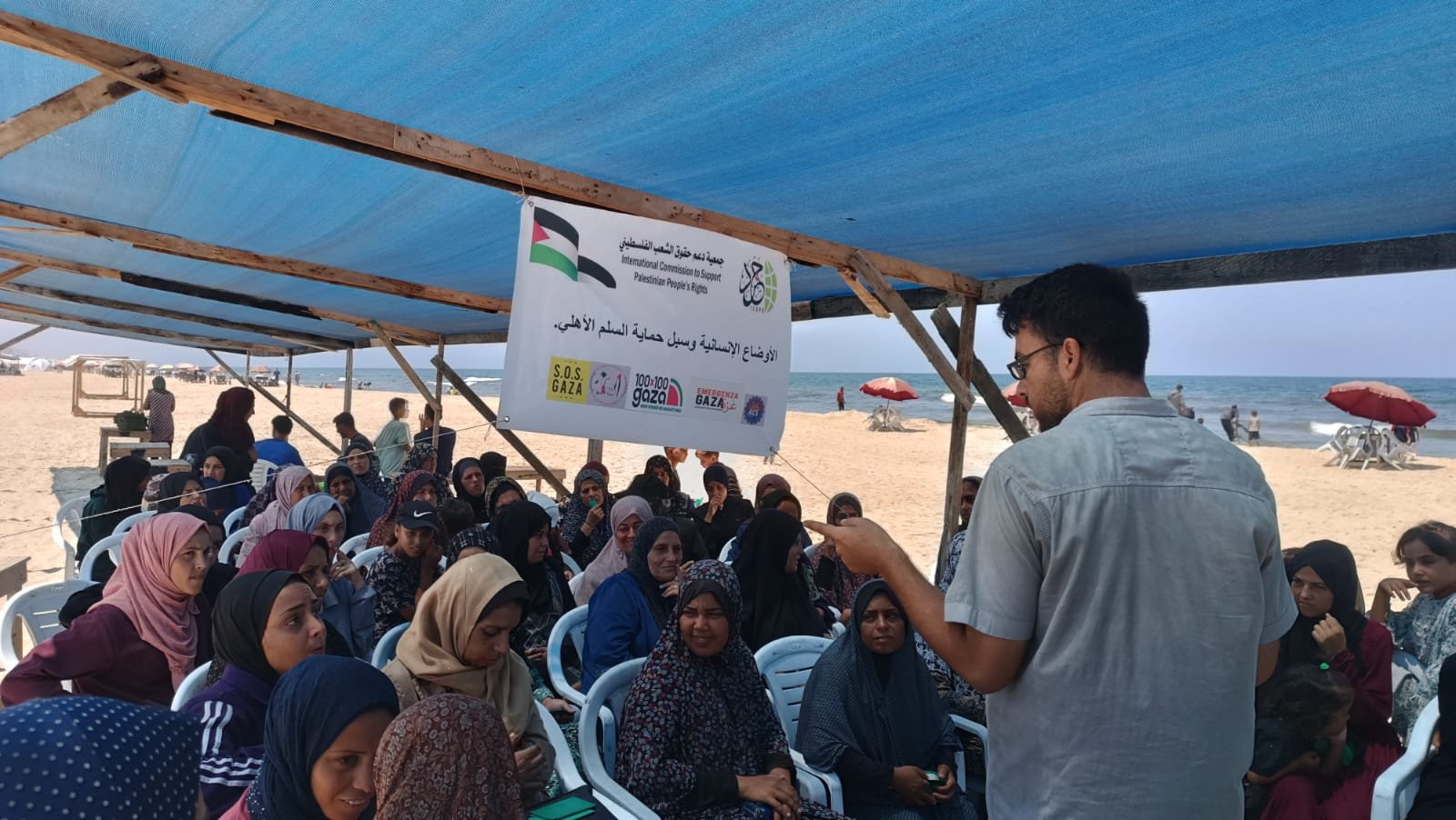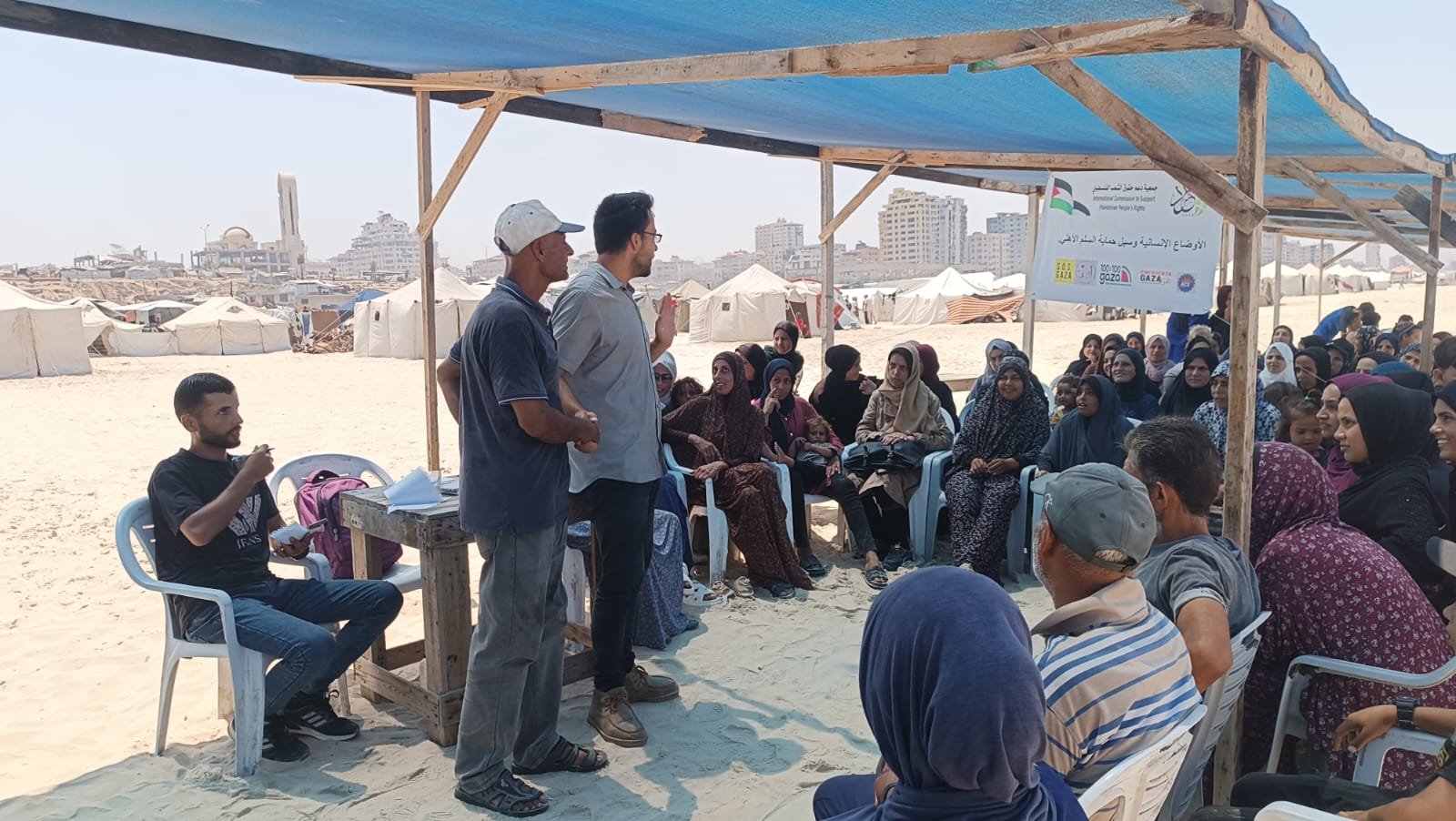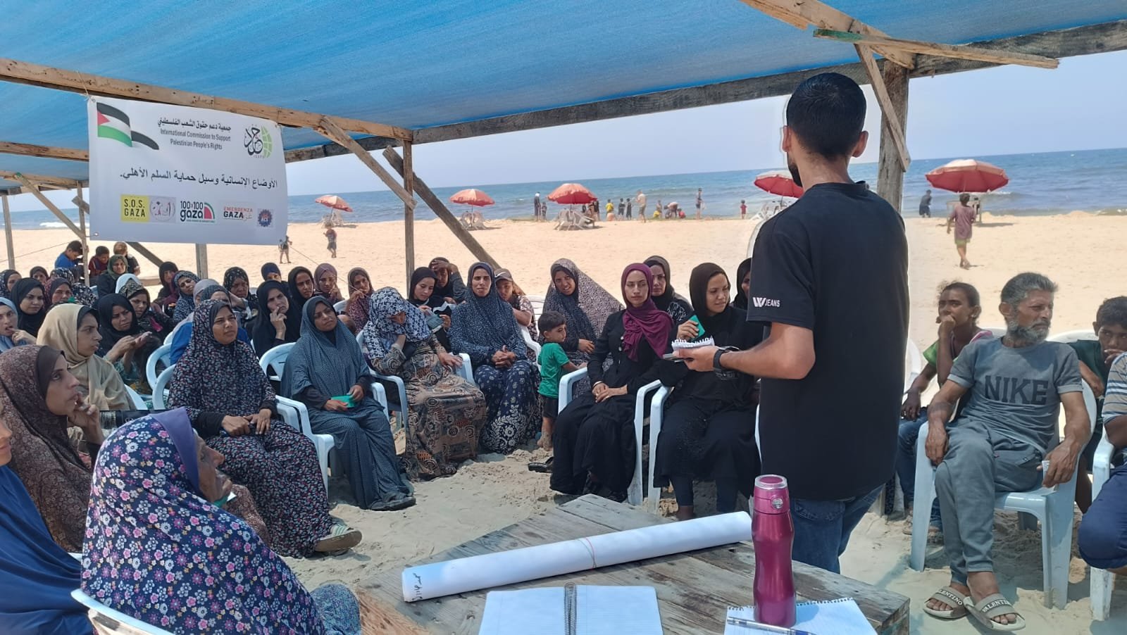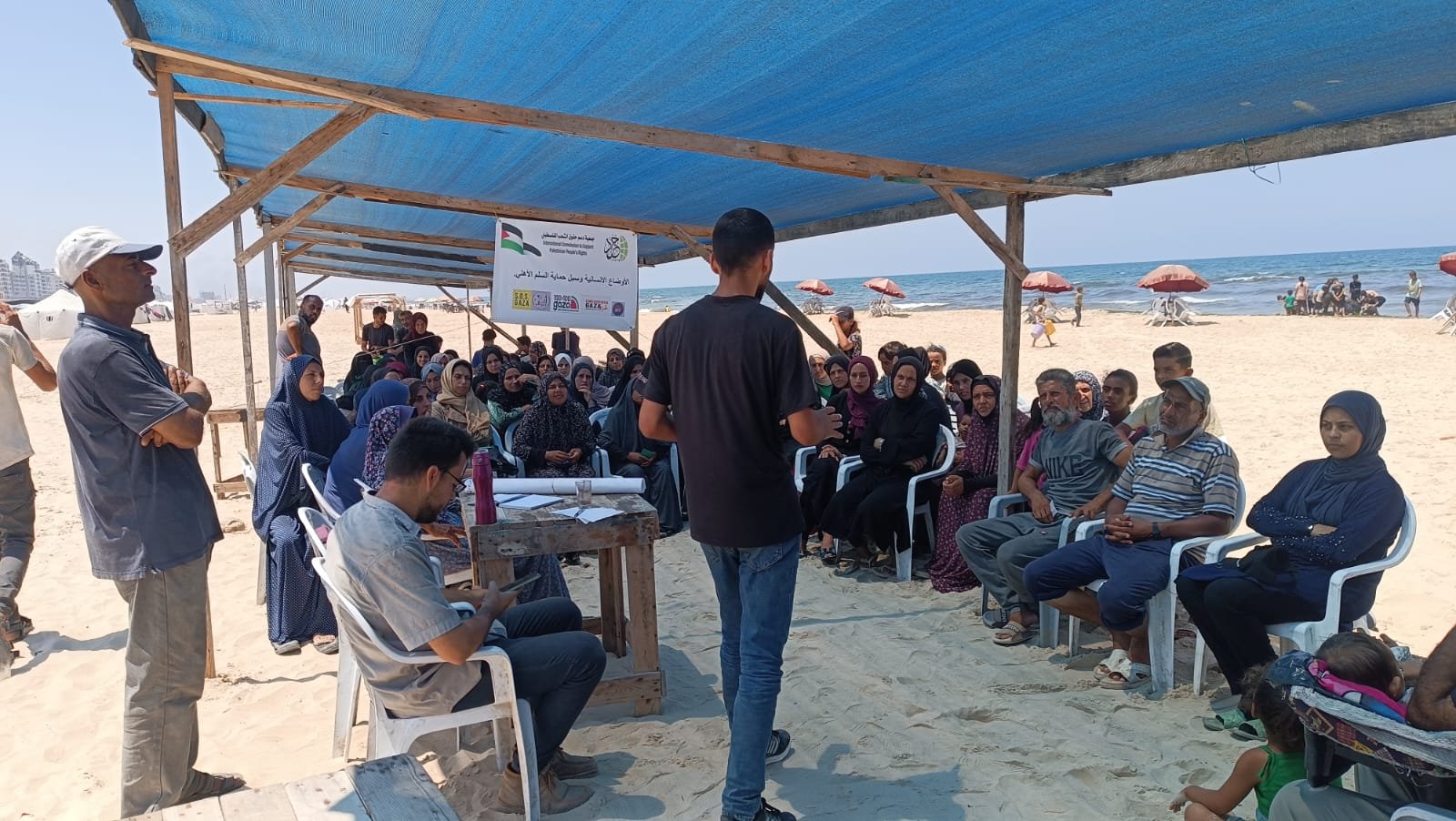 نظمت الهيئة الدولية لدعم حقوق الشعب الفلسطيني “حشد”، أمس الأحد، ورشة عمل بعنوان “الاستجابة الإنسانية وحماية السلم الأهلي”، في إحدى الخيام المقامة على شاطئ بحر غزة، والتي تؤوي نازحين من مناطق متفرقة من قطاع غزة جرّاء العدوان الإسرائيلي المستمر.