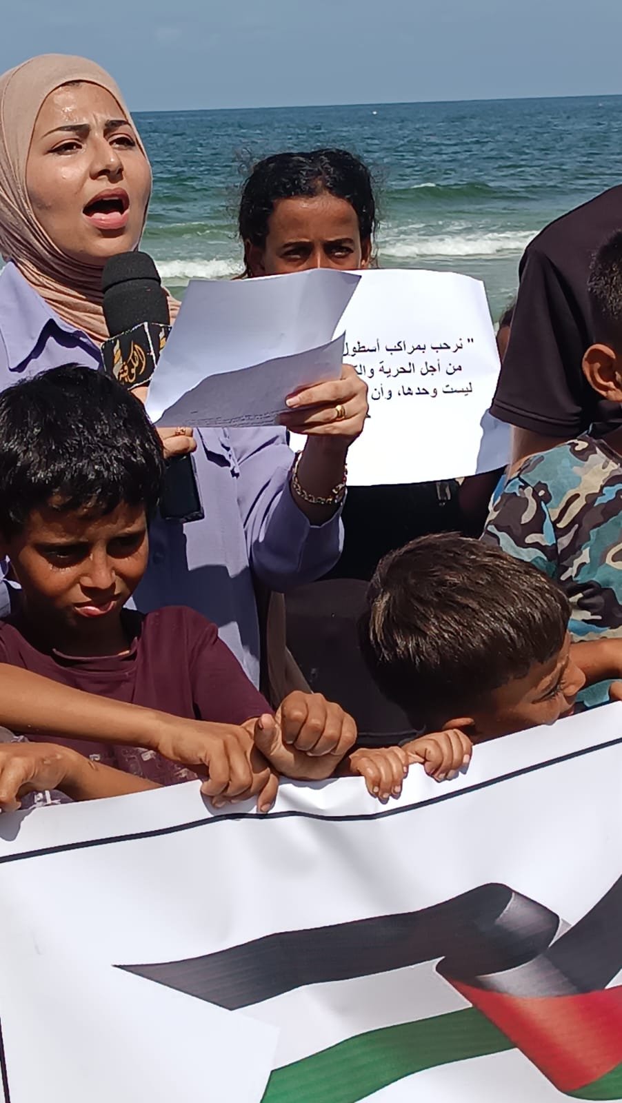حشــــد تنظم وقفة تضامنية في دير البلح دعمًا لأسطول الصمود وتدين جريمة القرصنة الإسرائيلية في المياه الدولية