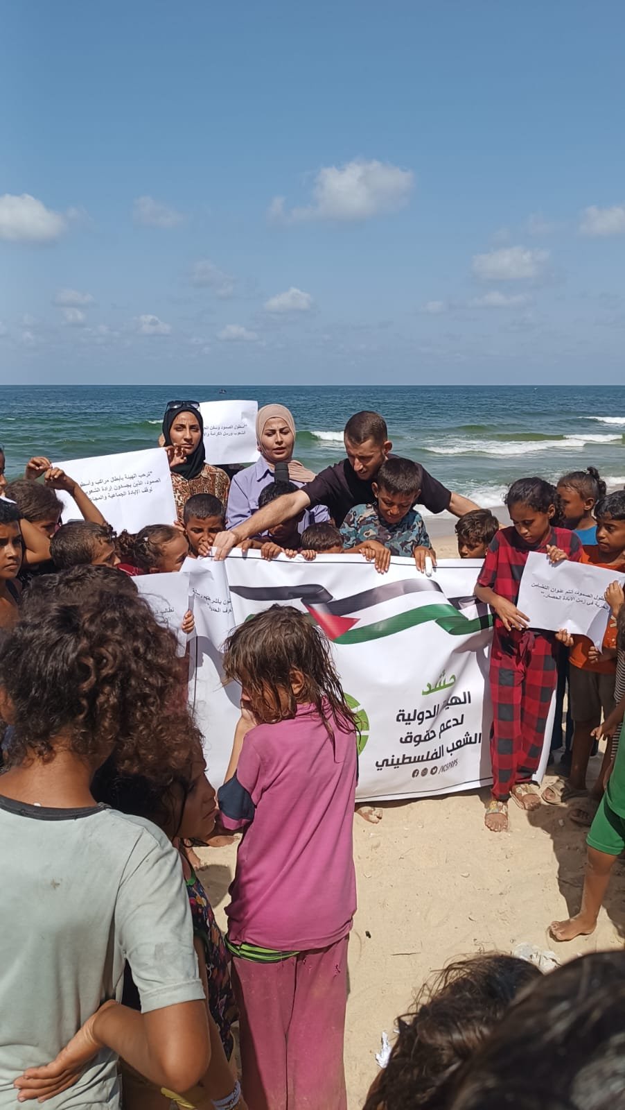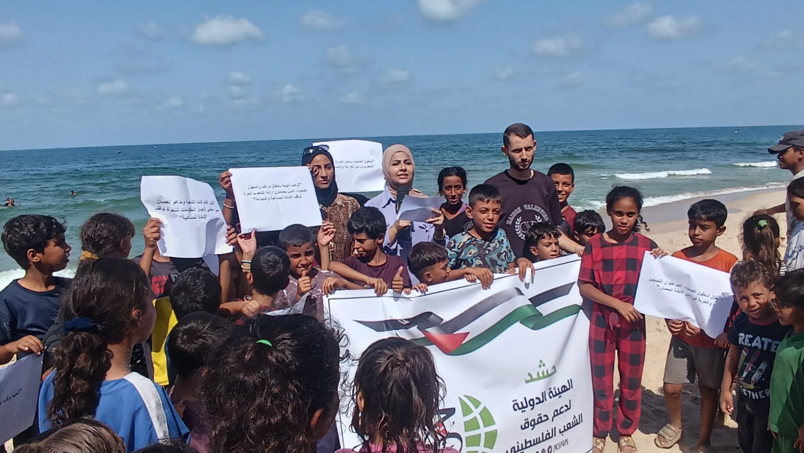 نظمت الهيئة الدولية لدعم حقوق الشعب الفلسطيني (حشد) صباح اليوم السبت، وقفة تضامنية حاشدة على شاطئ بحر مدينة دير البلح وسط قطاع غزة، دعمًا ومساندةً لـ”أسطول الصمود” الذي تعرض لاعتداء إسرائيلي عدواني في المياه الدولية خلال رحلته التضامنية الهادفة إلى كسر الحصار المفروض على قطاع غزة منذ أكثر من ثمانية عشر عامًا.