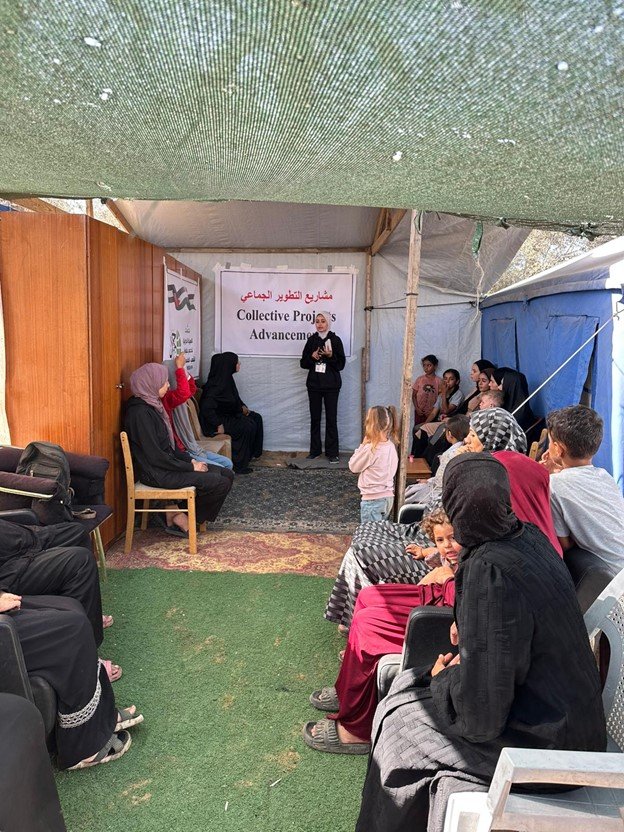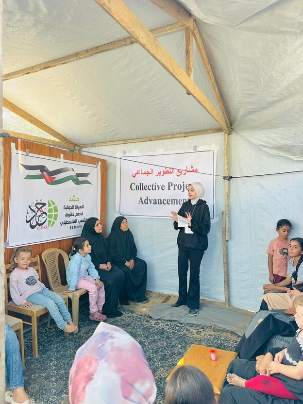 نفذت الهيئة الدولية لدعم حقوق الشعب الفلسطيني (حشد) سلسلة من ورش العمل توعوية في محافظة الوسطى – دير البلح ، ضمن انشطة التطوير الجماعي ، استهدفت النساء والأطفال، وذلك في إطار جهودها المستمرة لتعزيز ثقافة السلم الأهلي وحماية الفئات الهشة في المجتمع الفلسطيني، لاسيما في أعقاب العدوان الإسرائيلي الأخير على قطاع غزة.