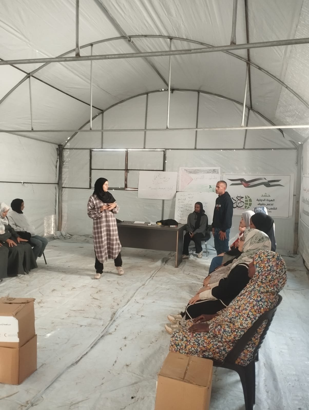 تواصل الهيئة الدولية لدعم حقوق الشعب الفلسطيني (حشد) جهودها الإنسانية الهادفة لحماية الأطفال وتعزيز صمود الأسر النازحة، من خلال تنفيذ سلسلة من أنشطة الدعم النفسي والاجتماعي والتوعية بمخاطر مخلفات الحرب، وذلك ضمن برامج الطوارئ المخصصة لسكان مراكز الإيواء.