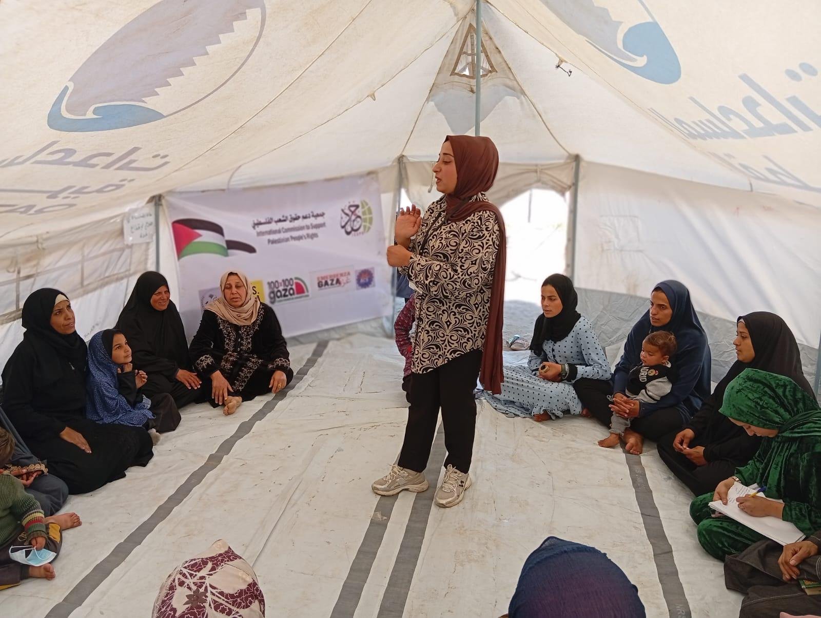 كما تخلل اللقاء تزويد المشاركات بمعلومات وإحصائيات حول أعداد الضحايا من النساء والأطفال، وعدد الأرامل نتيجة العدوان على قطاع غزة، إلى جانب مناقشة التحديات التي تواجهها المرأة في ظل النزوح، وسبل تمكينها من تجاوز القيود والصعوبات المتعلقة بالسكن ورعاية الأطفال واتخاذ القرارات الضرورية لحماية أسرتها.
