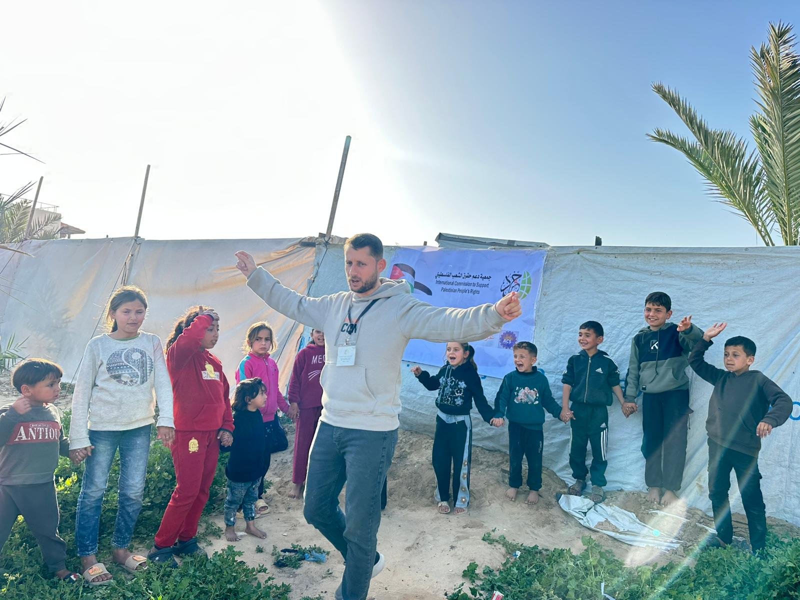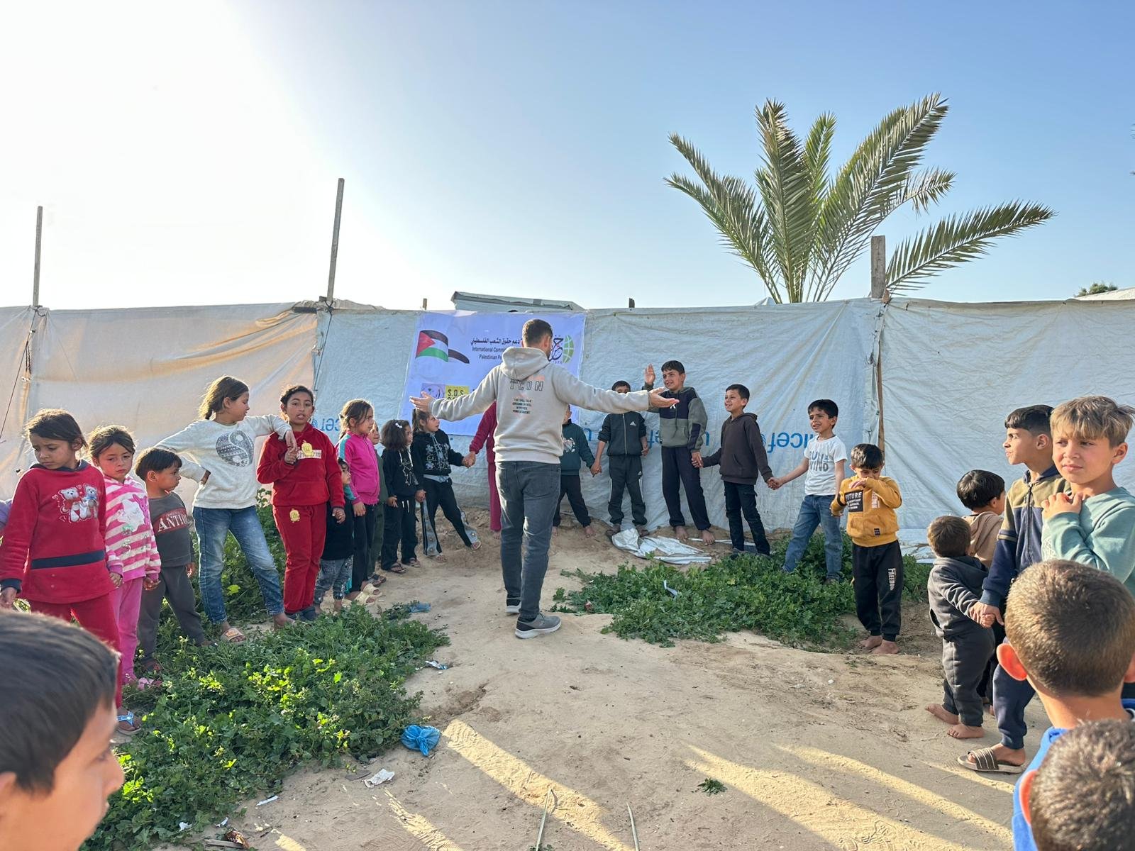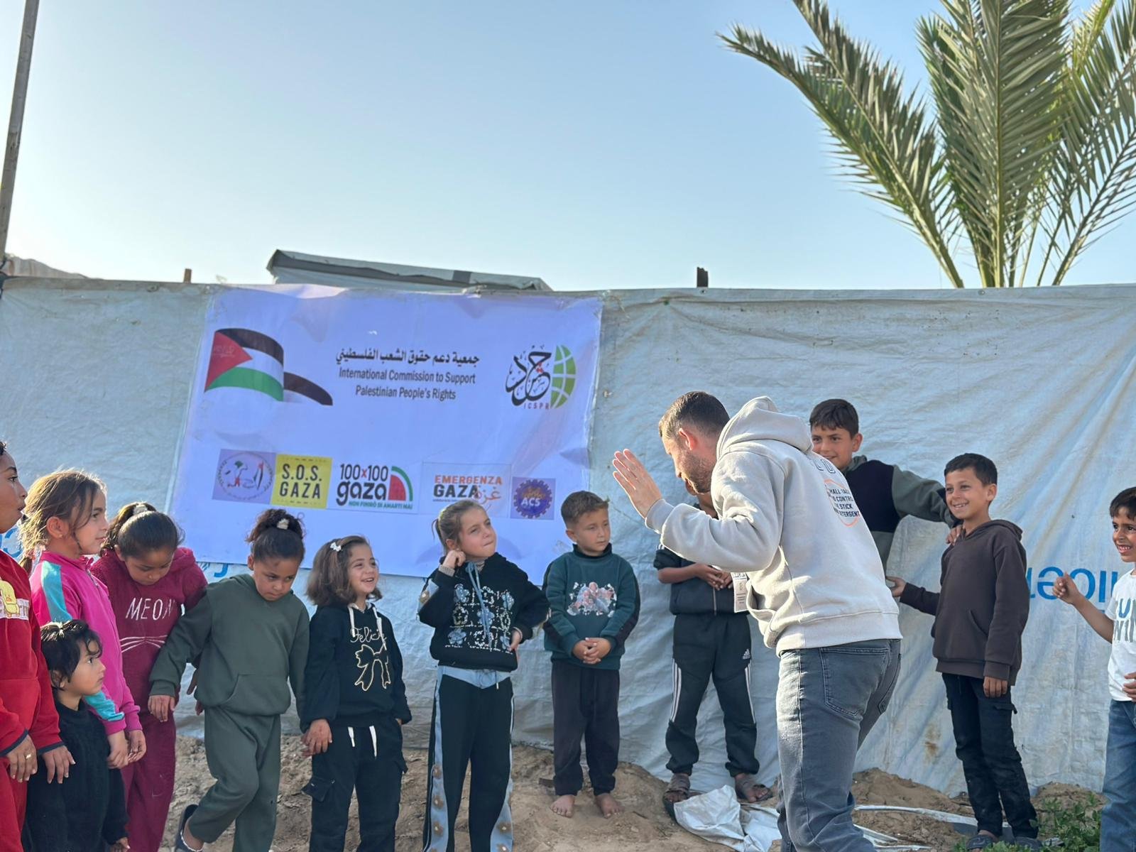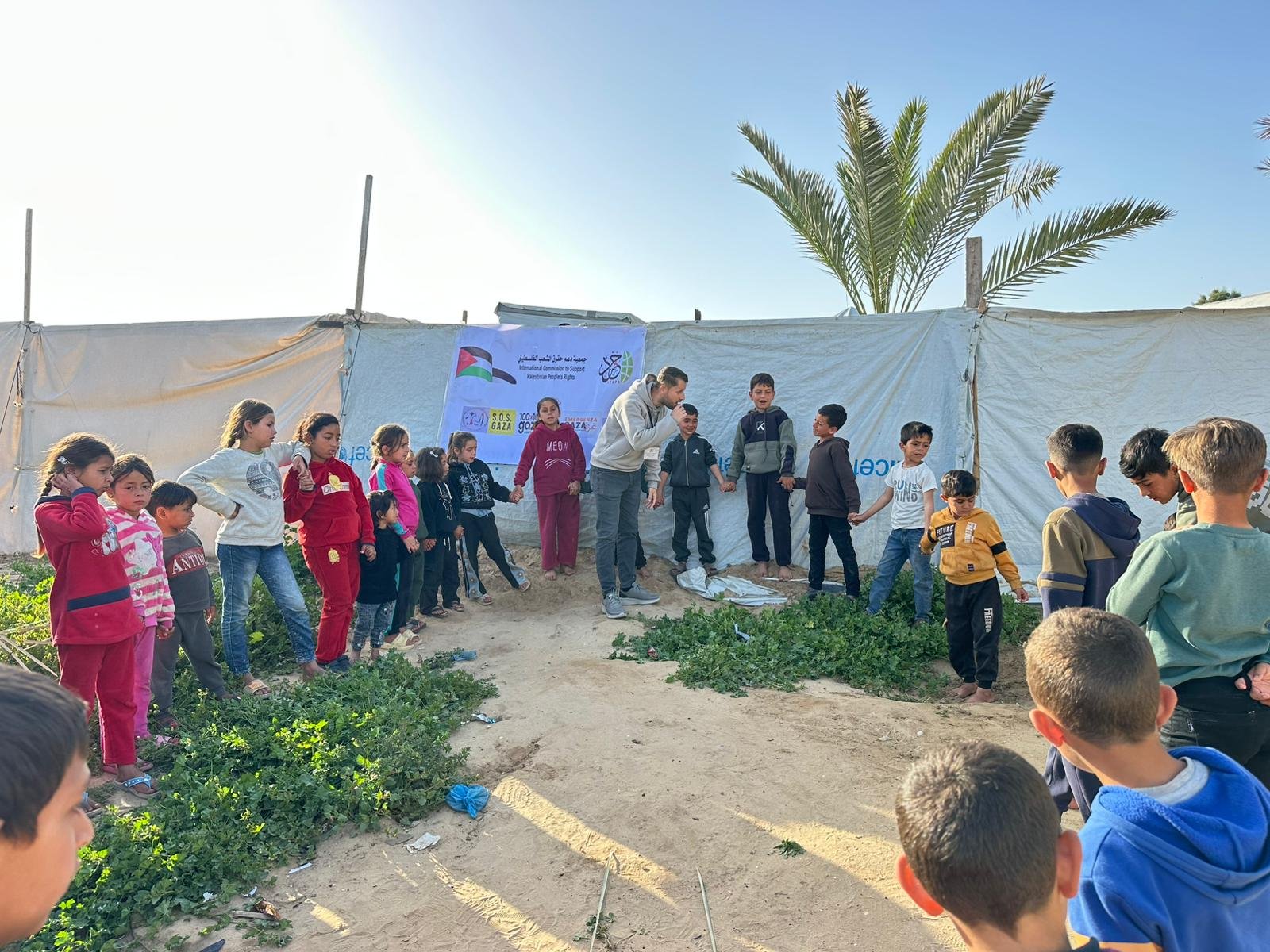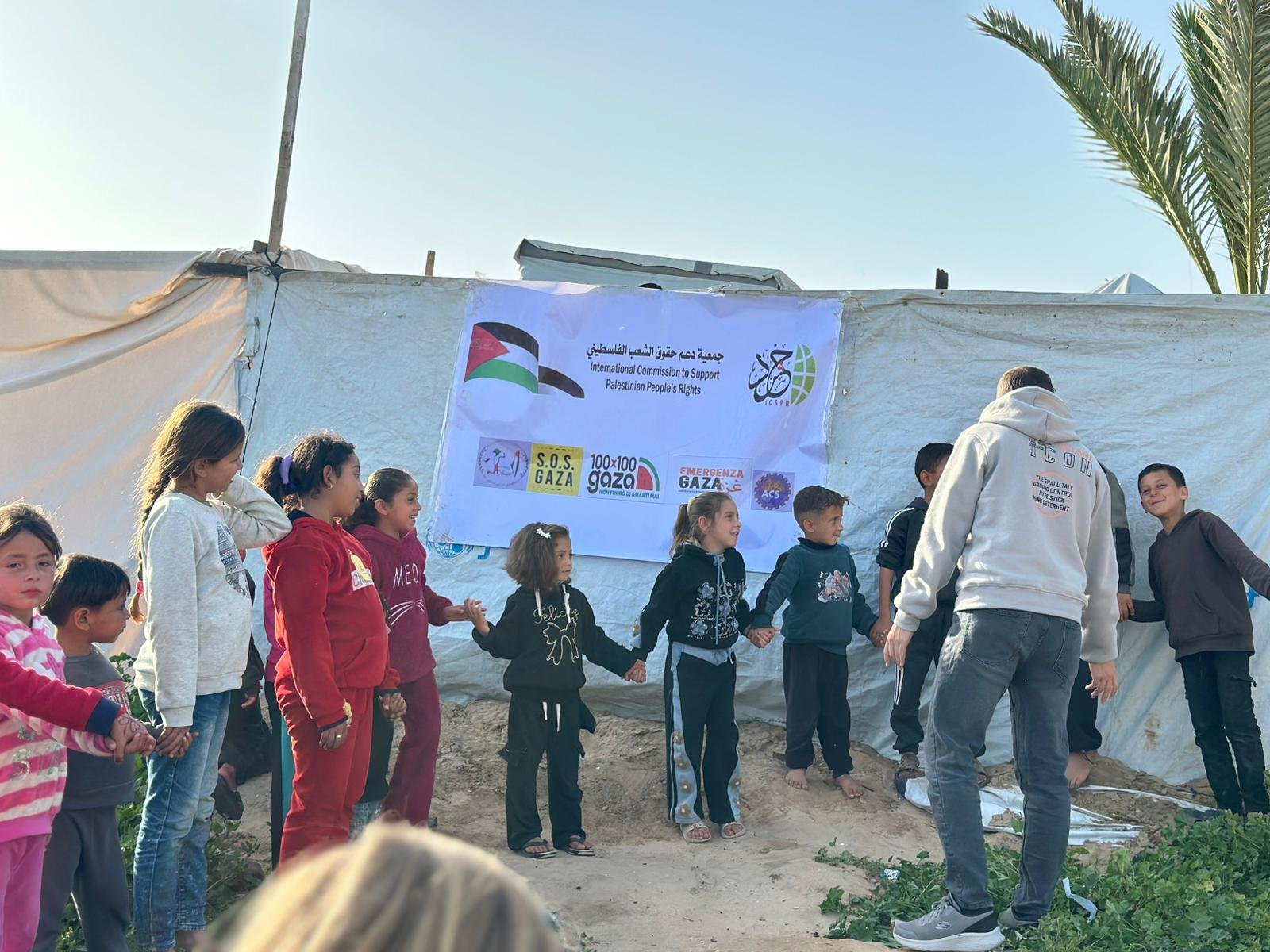 نفذت الهيئة الدولية لدعم حقوق الشعب الفلسطيني – حشد، بالشراكة مع الحملة الإيطالية “100×100 غزة”، نشاطًا تفاعليًا وتوعويًا استهدف الأطفال في أحد المخيمات بمنطقة المشاعلة على شاطئ مدينة دير البلح، بمشاركة 30 طفلًا وطفلة، وذلك في إطار الجهود المشتركة لدعم صمود الأطفال وتعزيز صحتهم النفسية في ظل الأوضاع الإنسانية الصعبة التي يعيشها قطاع غزة.