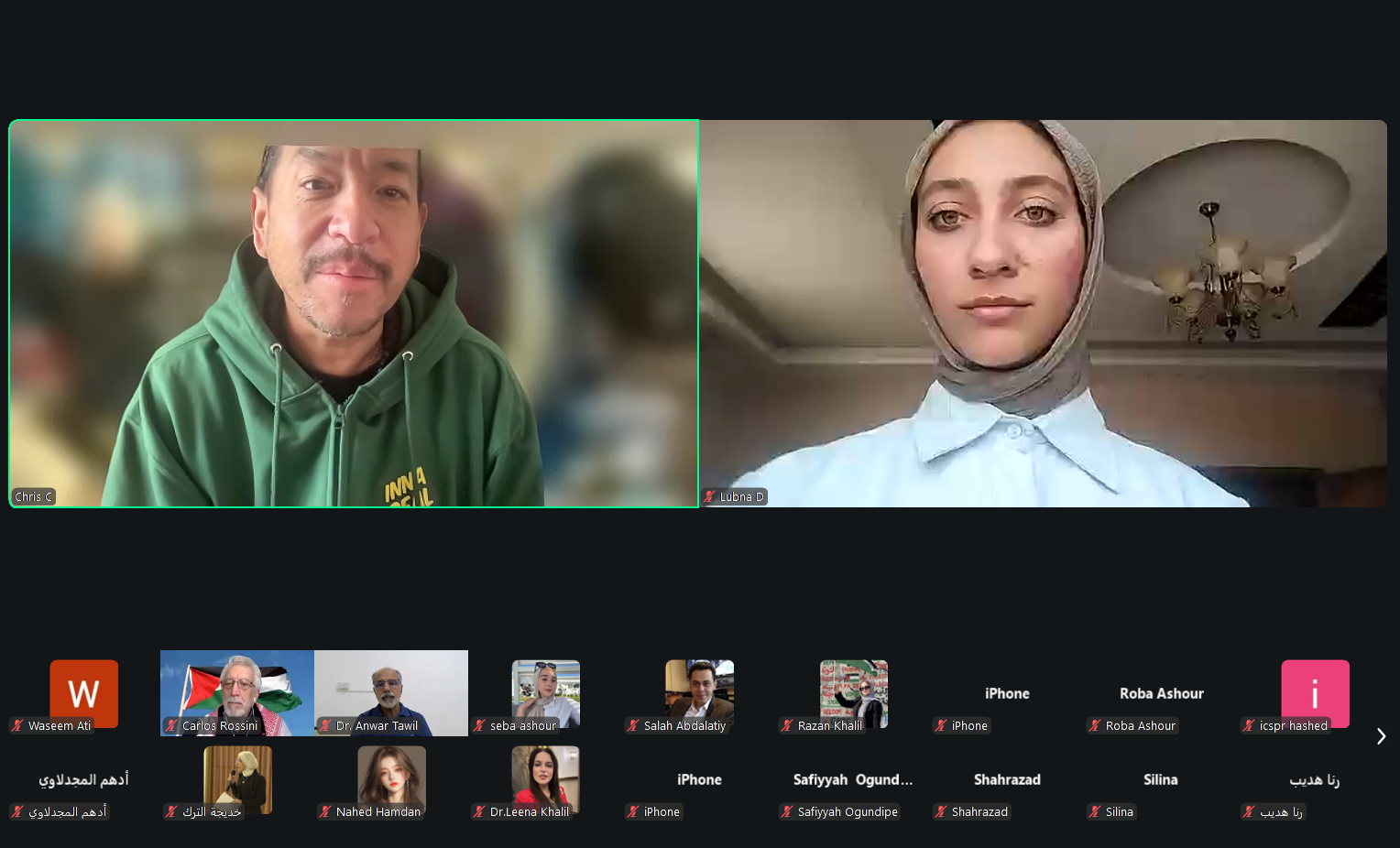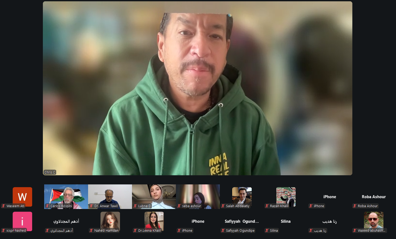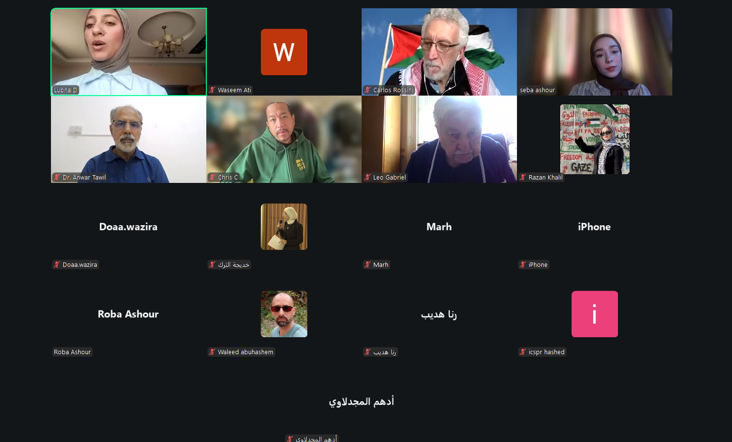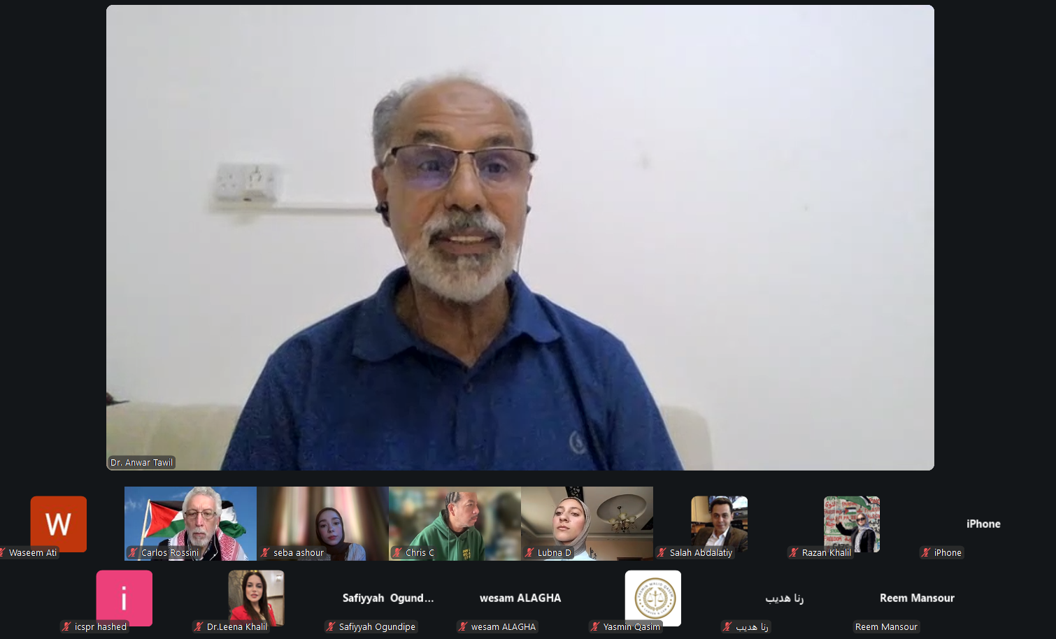 واستهلّ اللقاء بجانب تنسيقي وتقني لضمان جاهزية العرض التقديمي وسير الجلسة بصورة سليمة، حيث جرى التنسيق بين المشاركين حول مشاركة المواد والعروض، وضبط إعدادات الفيديو والعرض داخل منصة زووم، بما يضمن جودة الاتصال وانطلاق الجلسة الرئيسية بعد معالجة الجوانب التقنية الأساسية. كما شهدت بداية اللقاء كلمات ترحيبية متبادلة بين المشاركين، من بينهم الدكتور أنور الذي انضم من سلطنة عُمان، في أجواء أكدت أهمية هذا اللقاء الحقوقي والإنساني المخصص لقضية الأسرى الفلسطينيين.