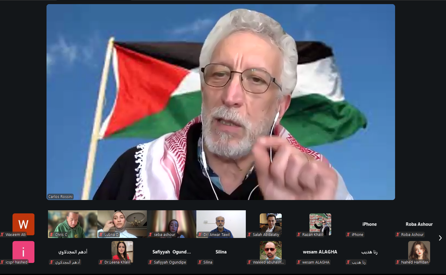 أما كارلوس روسيني، الناشط الحقوقي الفلسطيني والزميل السابق لما بعد الدكتوراه والباحث المشارك في البيولوجيا الجزيئية بجامعة هارفارد، فقد تناول في مداخلته الأبعاد الصحية والقانونية والسياسية لملف الأسرى الفلسطينيين، مشيرًا إلى الآثار طويلة الأمد التي قد تنجم عن تعريض الأسرى لمياه أو سوائل ملوثة أو منخفضة الجودة، وما يترتب على ذلك من أضرار جسدية ومضاعفات صحية قد تستمر لسنوات. واعتبر أن هذا النمط من المعاملة لا يمكن فصله عن سياسة أوسع لتجريد الأسرى من إنسانيتهم وإخضاعهم لظروف مهينة وقاسية.