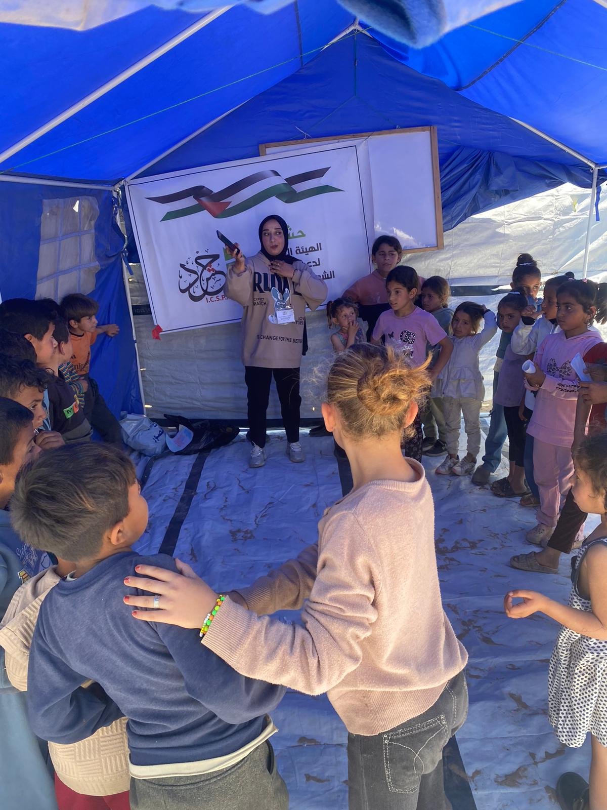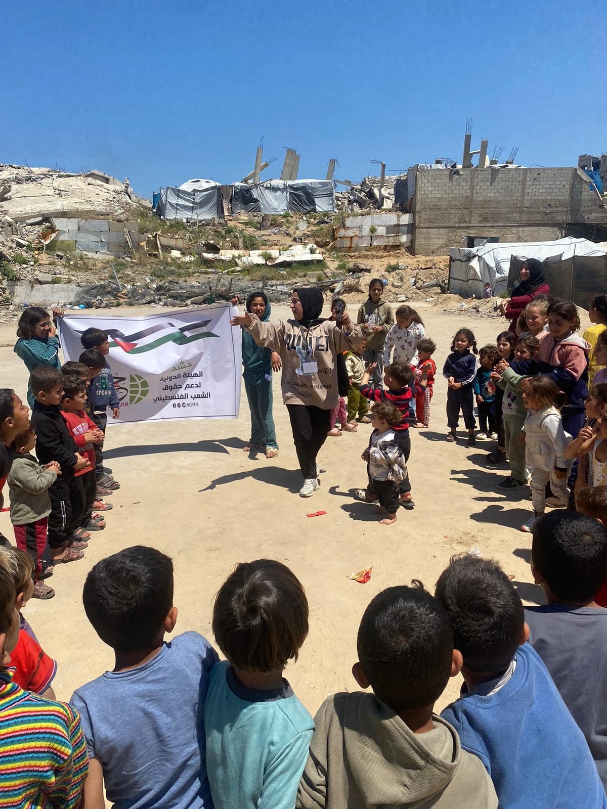 نفذت الهيئة الدولية لدعم حقوق الشعب الفلسطيني – حشد، بالشراكة مع الحملة الإيطالية “100×100 غزة”، لقاءً ترفيهيًا استهدف الأطفال في مخيم أهالي لبنان بمنطقة الصفطاوي شمال قطاع غزة، بمشاركة 30 طفلًا وطفلة، وذلك في إطار أنشطتها الهادفة إلى دعم الأطفال في مخيمات النزوح وتعزيز صمودهم النفسي والاجتماعي.